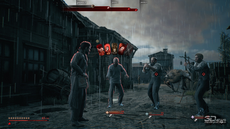 É uma pena que não haja mais variedade nas situações de combate. Você luta consistentemente com pequenos grupos de bandidos, soldados ou bêbados aleatórios, não há diferença entre eles. Não. Durante todas as vinte horas existe, na verdade, um tipo de inimigo, o que para batalhas táticas soa como uma sentença de morte. Alguns têm um pouco mais de saúde, outros mordem com um pouco mais de dor. Até mesmo as batalhas contra chefes terminam em um confronto com várias ondas dos mesmos oponentes – apenas um monstro bizarro aparece no fundo e às vezes bate em você. Assim como qualquer bêbado iria bater em uma colisão aleatória.