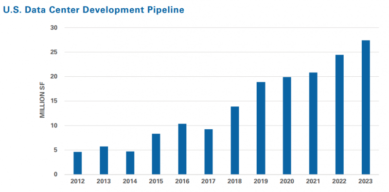 Os mercados existentes estão a lutar para fazer face à procura. No maior mercado do mundo, a Virgínia do Norte, com capacidade de 3.400 MW (no entanto, os dados variam aqui), onde muitos data centers estão localizados de forma compacta, a disponibilidade de capacidade é de apenas 0,2% – enquanto os residentes da região já são categoricamente contra novos projetos. Outros territórios populares também enfrentam desafios semelhantes. Em maio, já foi noticiado que os data centers norte-americanos estavam literalmente ficando sem espaço. No entanto, a construção é realizada de forma cada vez mais ativa a cada ano.