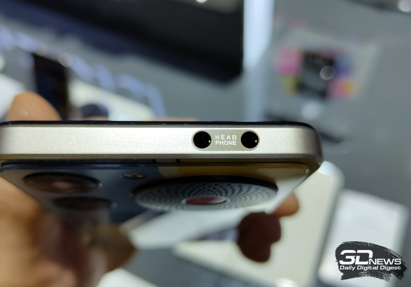 O smartphone também recebeu dois conectores de 3,5 mm para conexão de fones de ouvido com fio: um para o usuário e outro para seu amigo ou parceiro. Muito provavelmente, este não é o primeiro smartphone com um par de conectores de fone de ouvido, mas numa época em que os fabricantes estão privando ativamente os smartphones de tais conectores, é surpreendente ver um par ao mesmo tempo. A imagem é complementada pelo design luminoso do nubia Music, um aplicativo musical especial com tema de design para tocador de vinil, além da presença de música leve – o smartphone é equipado com uma faixa RGB ao longo do perímetro da tela, que brilha no tempo.