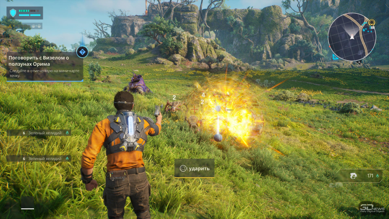 Mas a ação acabou sendo visivelmente melhor que os elementos narrativos. Sim, realmente parece um cruzamento entre Just Cause, Anthem, Mass Effect: Andromeda e muitos outros projetos, mas ainda compila empréstimos com sucesso e é capaz de entreter bem. Existem opções táticas interessantes com jetpack, escudo de energia e tiro – talvez não as mais responsivas, mas bastante divertidas. E embora não existam tantas armas básicas, há muita variabilidade nas formas de lidar com os oponentes.