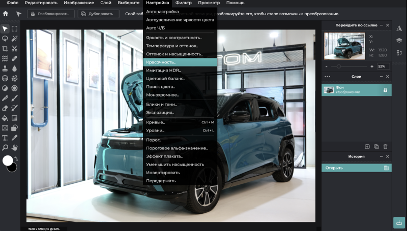 Trazendo emendas à imagem. Para editar fotos e desenhos às pressas, podemos recomendar com segurança o Serviço de Editor Pixlr. Este produto copia visualmente o Photoshop bem conhecido e oferece um conjunto impressionante de ferramentas para processar arquivos gráficos diretamente no navegador. Trabalhando com texto, primitivas geométricas, filtros, camadas, paleta de cores e outras funções características da maioria dos editores gráficos modernos são suportados. Além disso, o editor PIXLR apresentou ferramentas baseadas na inteligência artificial (AI), no entanto, para trabalhar com elas, você precisa se registrar no site do serviço e se inscrever.