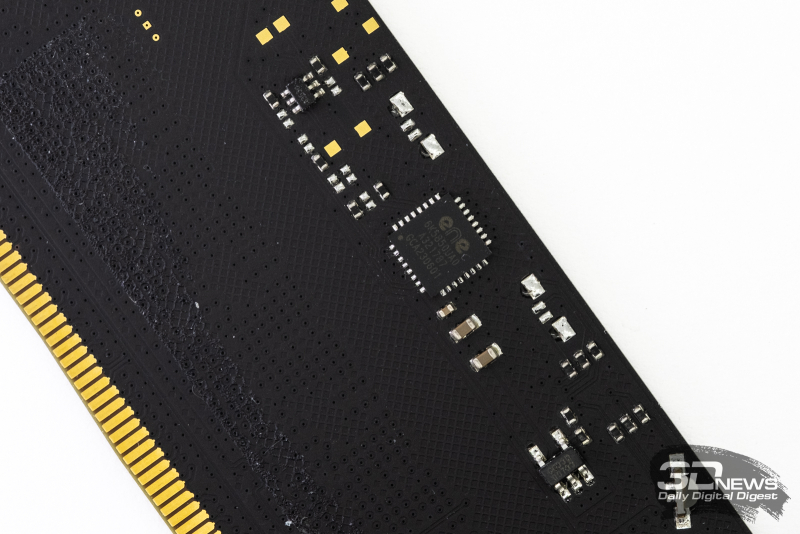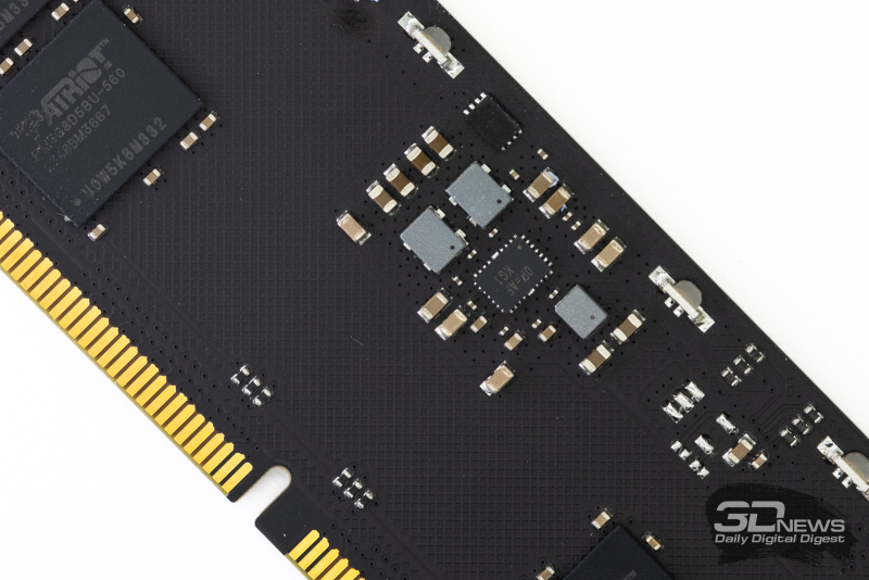 Não é fácil identificar os microcircuitos instalados na placa pela aparência. Patriot colocou suas próprias marcas neles. No entanto, com base em evidências indiretas, podemos concluir que esses chips são SK hynix H5CGD8MGBD.