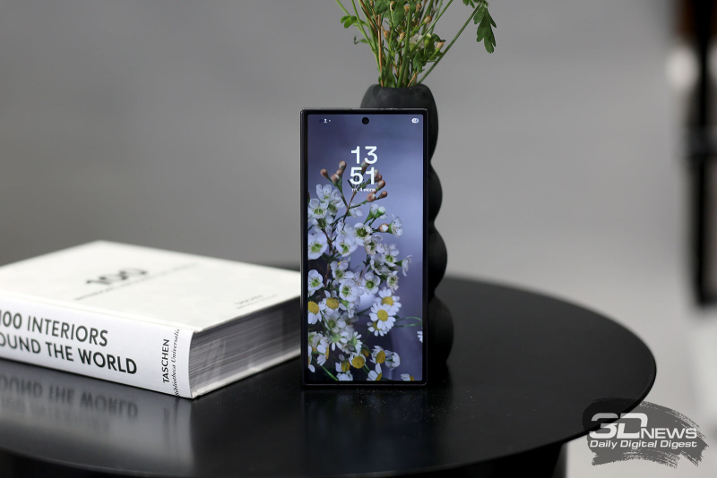 O design também foi atualizado: o Samsung Galaxy Z Fold7 foi projetado no estilo “cortado” típico de todos os smartphones atuais da marca, com bordas deliberadamente planas e tela. Observo que as molduras ao redor das telas – externa e interna – ficaram menores. E uma câmera frontal visível apareceu na tela interna. Infelizmente, um dos principais diferenciais dos antecessores teve que ser abandonado: dizem que não havia espaço suficiente para um módulo oculto no corpo fino.