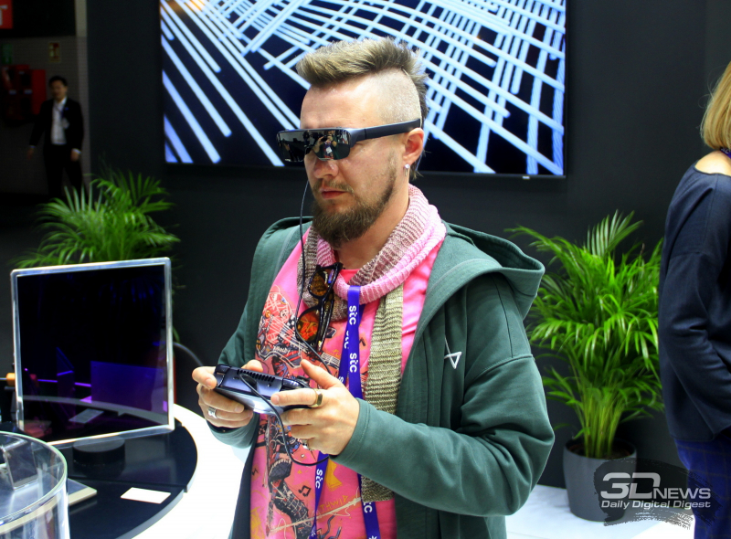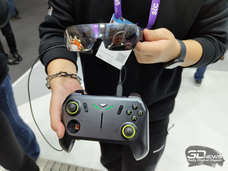 A Tecno seguiu um caminho diferente e bastante extravagante e fez um console portátil do Windows sem display. Como jogar neste caso? Muito simples: o console apresentava óculos de realidade aumentada AR Pocket Vision com um par de monitores Micro-OLED de 0,71 polegadas. Embora fosse mais correto chamar este dispositivo de display vestível em vez de fone de ouvido. Mas, seja como for, em vez do pequeno display de 7 a 8 polegadas tradicional dos consoles portáteis, o usuário ganha diante de seus olhos uma enorme tela virtual, o equivalente a uma tela de 215 polegadas a uma distância de 6 metros. .