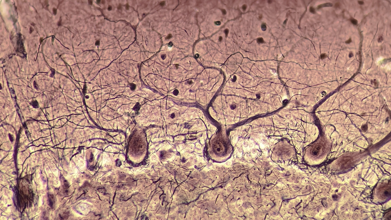 Fotomicrografia de “corpos ganglionares” descobertos por Jan Purkyně em 1839: grandes neurônios localizados no cerebelo com dendritos altamente ramificados (fonte: Wikimedia Commons)