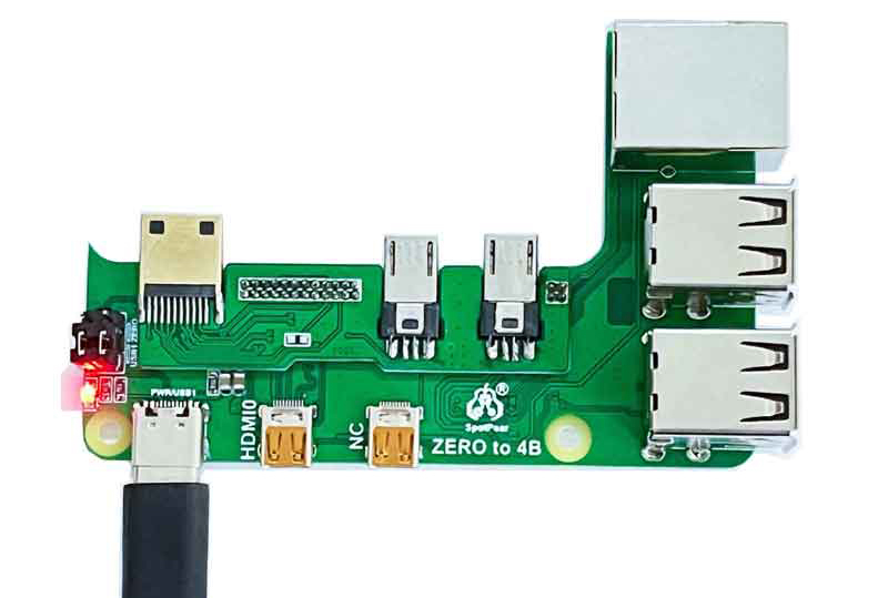 O adaptador Zero para 4B permite que você obtenha um computador estilo Raspberry Pi 4 com três portas USB 2.0 Tipo A, um conector HDMI e uma porta de rede 100MbE (baseada em RTL8152B). O pacote inclui um cabo USB tipo C. No caso da versão Zero a 3B, duas versões são possíveis: com quatro portas USB 2.0 ou com três conectores USB 2.0 e uma porta 100MbE (RJ45). Vem com um cabo Micro-USB. Em ambos os casos, existe uma interface HDMI.