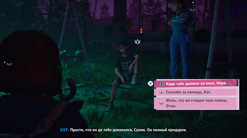 Talvez no segundo episódio tudo isso tenha um significado muito maior, mas duvido – é improvável que alguém morra porque você decidiu ajudar uma garota a limpar a cabana e não outra. O clima amigável continua até o final do primeiro episódio e, graças aos diálogos animados, você fica completamente imerso nessa atmosfera. Aqui você não escolhe apenas suas falas – o sistema é muito mais interessante. Primeiro, algumas respostas não aparecem até você olhar ao redor. Em segundo lugar, você pode interromper quem está falando – isso não afeta a história em nada, mas se quiser calar alguém, você pode fazer isso. Em terceiro lugar, não há necessidade de pressa em pressionar – se você ouvir com atenção, pode soar algo que adicionará outra linha à lista de opções – por exemplo, uma pergunta esclarecedora. Pode parecer algo pequeno, mas é o suficiente para fazer você querer participar ativamente das conversas, em vez de apenas ler o texto na tela.