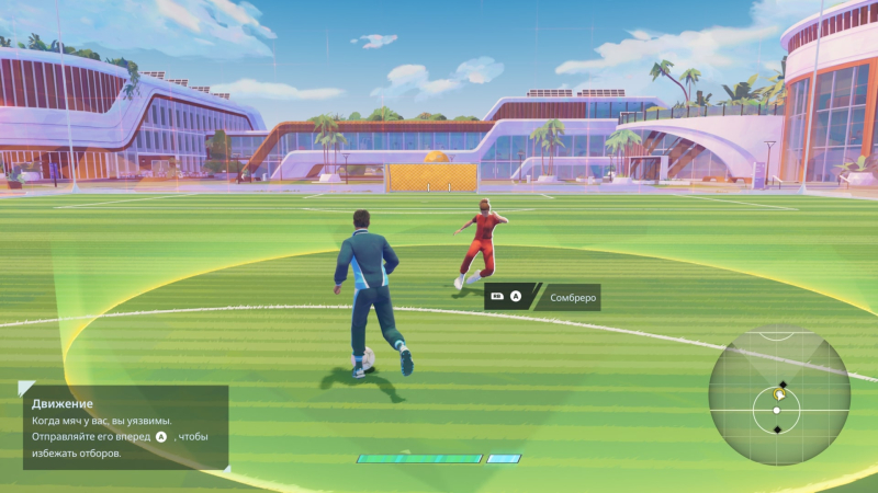 Você pode entender esses jogadores: os controles não são simples. Você não precisa simplesmente apertar um botão e passar a bola para um jogador próximo. Ao mesmo tempo, um passe não significa necessariamente que outro membro da equipe pegará a bola com destreza e continuará correndo – ele pode facilmente perdê-la. Primeiro, você precisa apontar o taco rapidamente na direção certa, o que nem sempre é fácil quando todos estão pressionando e tentando afastar a bola. Segundo, a bola não “magnetiza” muito os seus pés – se você chutá-la, pode perder o controle rapidamente, especialmente em alta velocidade. Com o tempo, você aprende a controlá-la melhor, realizando todos os tipos de truques simples, como jogá-la por cima da cabeça, mas isso não acontece imediatamente.
