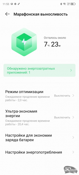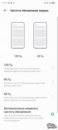 Fora isso, o painel também não é ruim: ângulos de visão decentes, sem PenTile, visualmente a imagem é percebida normalmente, não há força bruta com sombras frias na percepção subjetiva. Acrescentarei que você pode ajustar a taxa de atualização da tela de maneira flexível – defina-a manualmente para 60, 90 ou 120 Hz, ou deixe o smartphone decidir por si mesmo o que é mais apropriado em uma determinada situação. Nos jogos, o aumento da frequência é suportado seletivamente: por exemplo, no PUBG Mobile é 90 Hz (o que é muito raro para um smartphone desta classe), e no CoD Mobile é fixado em 60 hertz.