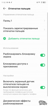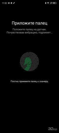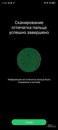 O leitor de impressão digital está localizado na superfície da tela. É utilizado um sensor óptico – funciona rapidamente e com uma porcentagem mínima de rejeições. Está localizado, para o meu gosto, muito baixo, mas ainda não precisei interceptar o smartphone na mão para alcançá-lo com o polegar. Não há feedback tátil quando acionado. Mas existe um sistema duplicado de identificação do usuário pelo rosto – usando a câmera frontal, sem sensores adicionais.