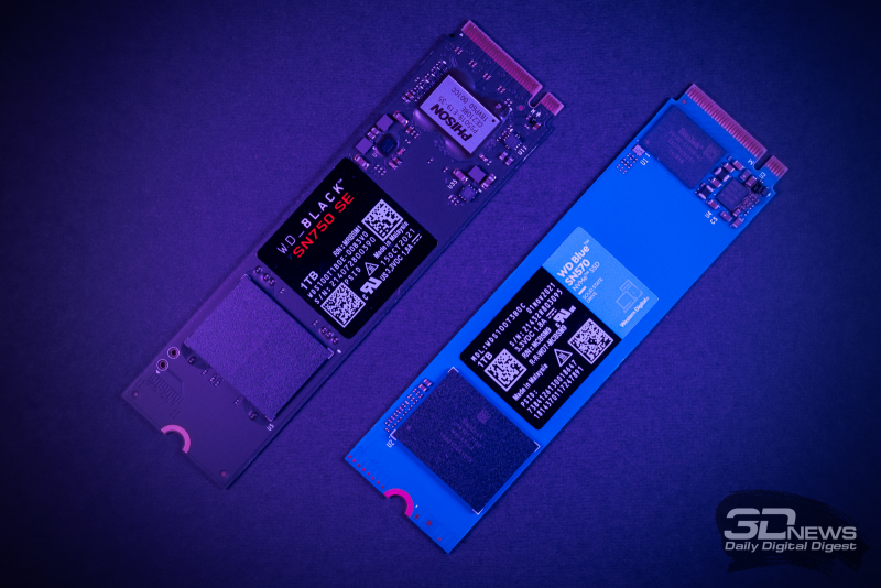 Parece que, na ausência de vantagens de desempenho claras, o fabricante tentou criar uma diferença emocional entre o WD Black SN750 SE e o WD Blue SN570. O Black SN750 SE é apresentado como um modelo para um público de jogos – em sua descrição no site oficial, as referências a jogos de vez em quando piscam, como se esse SSD tivesse sido criado propositadamente para armazenar jogos. Na descrição do Blue SN570, os jogos não são mencionados, a Western Digital fala sobre esse drive no espírito de “um upgrade ideal para aceleração de PC”.