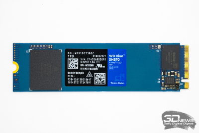 O WD Blue SN570 é um sucessor direto do Blue SN550, não apenas no sentido ideológico, mas também no sentido técnico. A novidade ainda usa o mesmo design de PCB, mas os componentes colocados nela são um pouco diferentes. O controlador anterior desenvolvido internamente pela SanDisk foi substituído por sua versão atualizada, a memória também é usada de forma diferente. Ambas as mudanças visam reduzir custos e aumentar o desempenho. Enquanto o Blue SN550 usava 96 camadas TLC 3D NAND (BiCS4), o SN570 usa memória BiCS5 de 112 camadas mais densa e mais rápida com uma frequência de interface de 1,2 GHz, resultando em um aumento de 50% no pico de taxa de transferência.