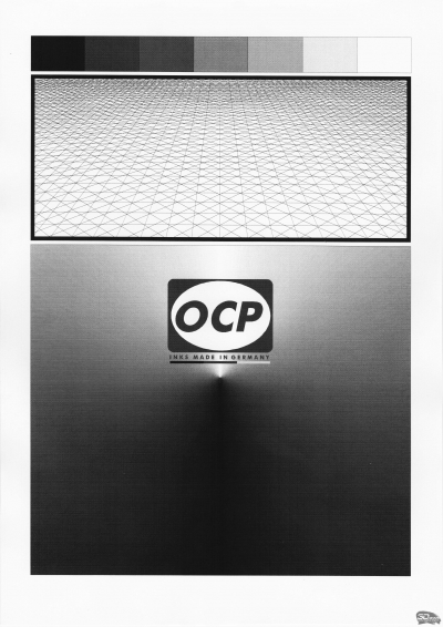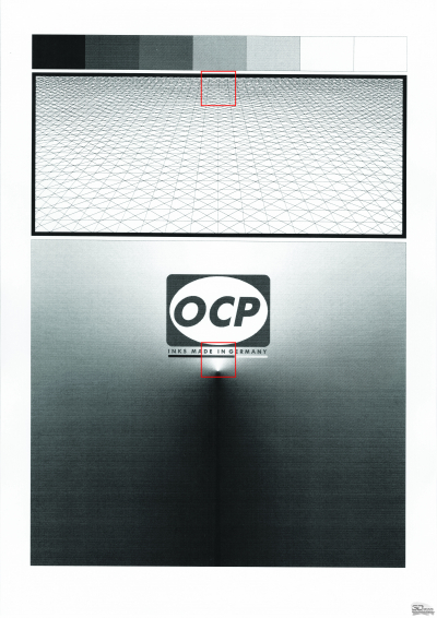 Comparação da impressão da folha de teste OCP em 600×600 (esquerda) e 1200×600 (direita) dpi