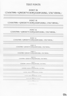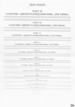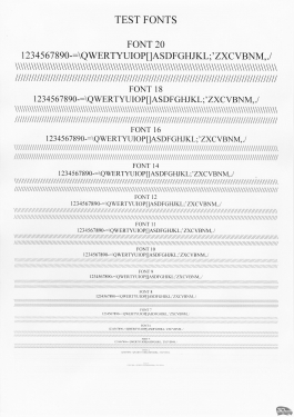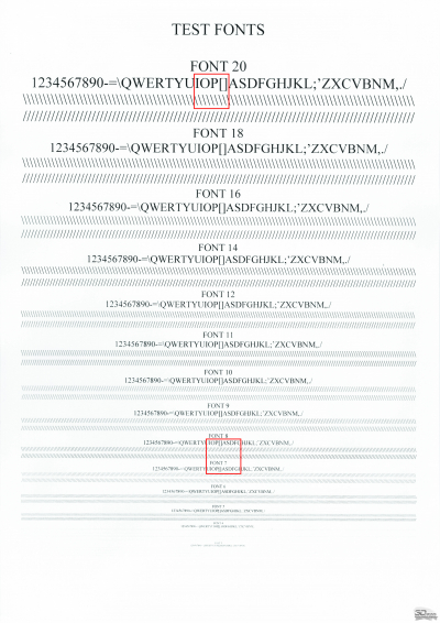 Abaixo você pode avaliar a qualidade das impressões resultantes de diferentes tipos com diferentes resoluções de impressão e densidades de toner. Todas as impressões de teste apresentadas no material foram feitas em papel de escritório A4 com densidade de 80 g/m2, após o que foram digitalizadas com resolução de 600 dpi e salvas no Adobe Photoshop no formato JPG com máxima qualidade.
