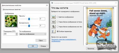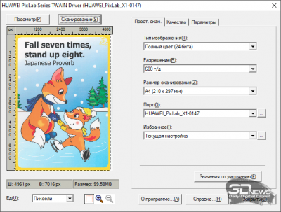 Também observamos que, usando o aplicativo Huawei Print, você pode descobrir as configurações atuais da MFP, imprimir uma página de teste e até alterar as configurações de rede. Em geral, os recursos do pacote de software HUAWEI PixLab X1 são suficientes tanto para qualquer opção de impressão quanto para digitalização, que pode ser realizada não apenas pelo aplicativo integrado, mas também por outros programas, como, por exemplo, Adobe Photoshop.