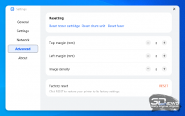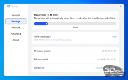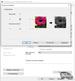 As configurações de impressão do HUAWEI PixLab X1 também são bastante familiares. O usuário tem a opção de duas opções de qualidade de impressão (600 × 600 ou 1200 × 600 dpi), três tipos de papel, além de ajustes de brilho e contraste da impressão. Este último pode ser confiável para instalar o programa no modo automático (para texto ou imagem), ou você pode configurá-lo manualmente. Também na página com configurações gerais de impressão, você pode definir o modo de economia de toner ao imprimir, habilitar a impressão frente e verso automática e selecionar o número de páginas que cabem em uma folha. Quase todas as impressoras têm configurações semelhantes.