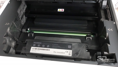 Substituir o cartucho de toner no HUAWEI PixLab X1 é extremamente fácil. Para fazer isso, você só precisa abrir a tampa frontal do gabinete e, em seguida, mover o cartucho um pouco para o lado usando a alça preta saliente no compartimento central. Tudo é extraível! O cartucho é instalado na ordem inversa.