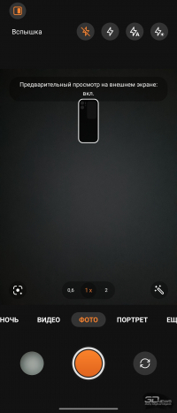 O aplicativo da câmera no ColorOS 13 não mudou em si: navegação fácil, um número limitado de configurações (entre as quais, no entanto, há tudo o que você precisa) e o botão do obturador, destacado em laranja por algum motivo, o que confunde todos os tempo (você mudou acidentalmente para a gravação de vídeo?). Existe um sistema proprietário de aprimoramento de cores AI, que, em teoria, ajusta a imagem a uma cena específica, mas, na verdade, basicamente apenas aumenta a saturação da cor. Quanto aos recursos especiais de um smartphone em forma de concha, tudo é simples. Na posição “meio dobrada”, à maneira de um laptop, a janela do visor vai para a metade superior da tela, deixando a unidade de controle na parte inferior. Você também pode ativar a visualização da imagem na tela externa para já usá-la como visor.