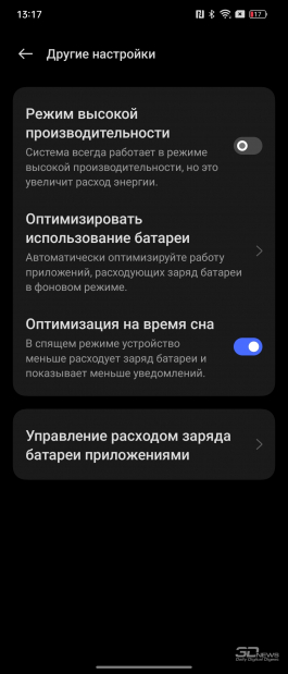 A propósito, uma alta taxa de atualização é definida aqui apenas continuamente. Não há ajuste automático, quando o próprio smartphone decide onde definir 120 hertz e onde você pode se limitar à frequência padrão.