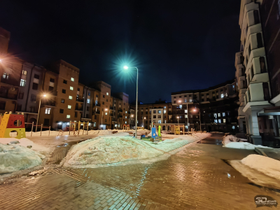 Modo noturno, no qual o smartphone tira uma série de fotos com diferentes exposições, combinando-as em uma, OPPO, como sempre, não é muito expressivo. Sim, a imagem fica mais nítida, os detalhes são trabalhados melhor, mas não há aumento radical na qualidade da imagem. Em primeiro lugar, porque o AI não comutável intervém muito ativamente no processo de filmagem, tanto no modo padrão quanto no modo Pro, então simplesmente não há necessidade particular de mudar para o modo noturno.