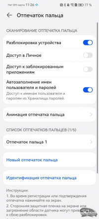 O leitor de impressão digital no Huawei P60 Pro está localizado sob a tela – um sensor óptico bastante rápido e responsivo é usado e também responde ao toque de um dedo molhado, o que não é característico de um scanner desse tipo. Apenas sua localização foi um pouco decepcionante – muito perto da borda inferior do case, então você tem que interceptar o smartphone em sua mão para tocar a área de digitalização com o polegar. Também não há confirmação tátil da operação. Existe também um sistema de identificação de usuários duplicados por meio de reconhecimento facial, que funciona com base na câmera frontal, sem sensores adicionais.