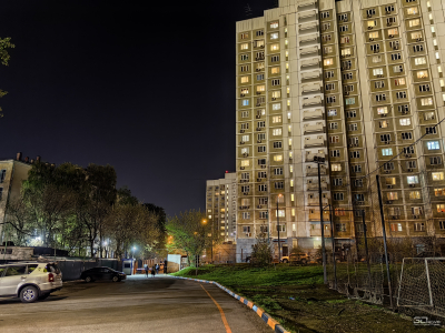 O modo noturno nos smartphones HUAWEI nos últimos anos nem sempre foi útil – às vezes não valia a pena recorrer a ele por causa de algoritmos de processamento muito agressivos. No HUAWEI P60 Pro, a situação é diferente. Sim, a agressão está presente, mas não excessiva – e o ganho em comparação com o modo normal de fotografar à noite é muito perceptível. Deixe a imagem ficar saturada de detalhes e as fontes de luz “flutuar”, mas o equilíbrio de luzes e sombras é quase perfeito. E, como eu disse acima, no modo noturno, as chances de obter uma foto noturna nítida em uma câmera com zoom aumentam muito.