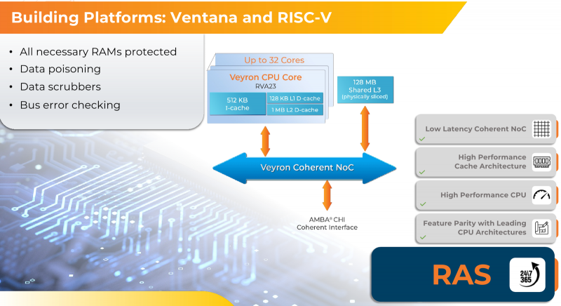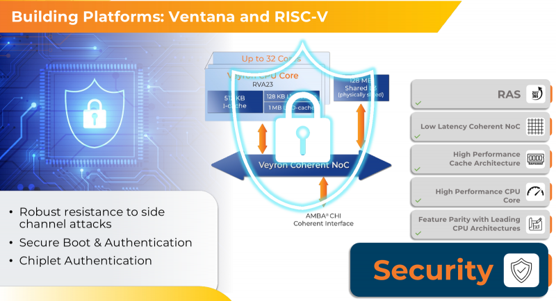 Posicionado como uma solução para hiperescaladores, grandes data centers e HPC, o Veyron V2 possui recursos avançados de prevenção de erros e proteção de dados, desde caches ECC e suporte para inicialização segura até autenticação em nível de chiplet e funções RAS avançadas. Além disso, é implementada proteção contra ataques de canal lateral.