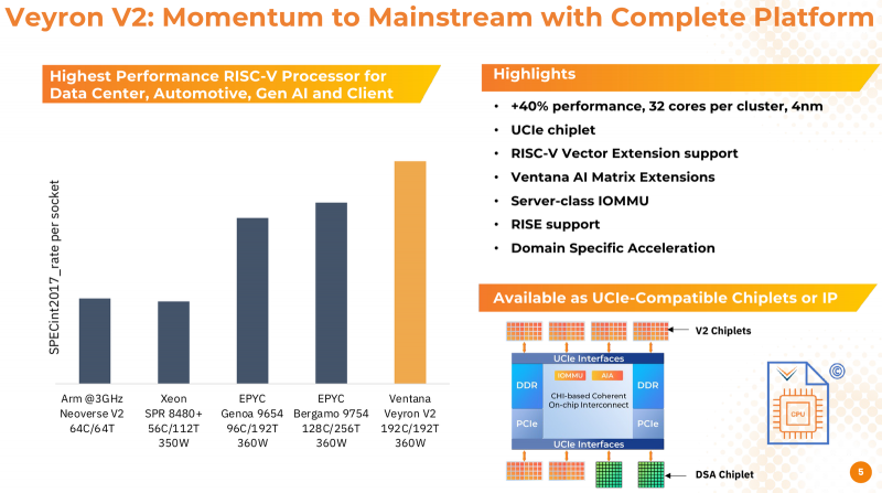 Em 2022, a Ventana Micro Systems anunciou os primeiros processadores RISC-V verdadeiramente para servidor, Veyron V1. O anúncio de chips que prometem competir em igualdade de condições com os melhores processadores x86 com arquitetura x86 soou alto. No entanto, o Veyron V1 não ganhou popularidade, mas recentemente a empresa anunciou a segunda geração de chips Veyron V2, que incorporou mais plenamente os princípios do design modular e recebeu uma série de melhorias.