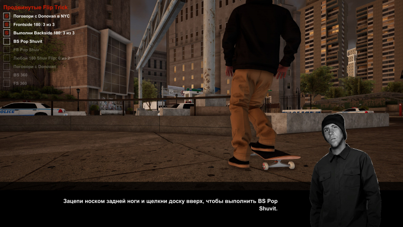 Após o treinamento, você é liberado para o mundo aberto, onde eles começam a emitir missões de história. Vale ressaltar logo de cara o óbvio: a trama está aqui para mostrar, os diálogos são cheios de piadas ruins (e não dubladas), e os personagens não são lembrados. Estes são apenas doodles não animados que são necessários apenas para receber missões e, na maioria dos casos, você é obrigado a realizar certos truques na área indicada. Para isso, eles distribuem o dinheiro necessário para comprar novos skates e, após concluir a próxima tarefa, um novo aparece no diário.