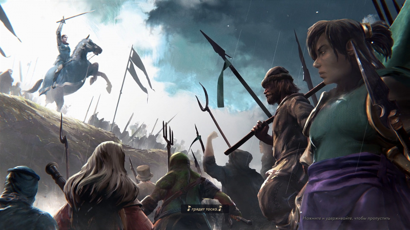 É melhor começar a se familiarizar com o jogo com campanhas de história, porque as colisões de dois (até agora) arcos de história o mergulham perfeitamente nas realidades de Songs of Conquest e o apresentam suavemente ao mundo. E as histórias em si não são ruins: a fuga do anfíbio Rusk dos traficantes de escravos e sua nova jornada para casa, que explodirá no fogo da revolução; a luta da Baronesa Cecilia contra os inimigos externos e internos de Stouthart. Ambas as histórias são bem escritas, moderadamente dramáticas e, o mais importante, emocionantes o suficiente para fazer o jogador querer conhecer mais de perto esse universo e as características do jogo.