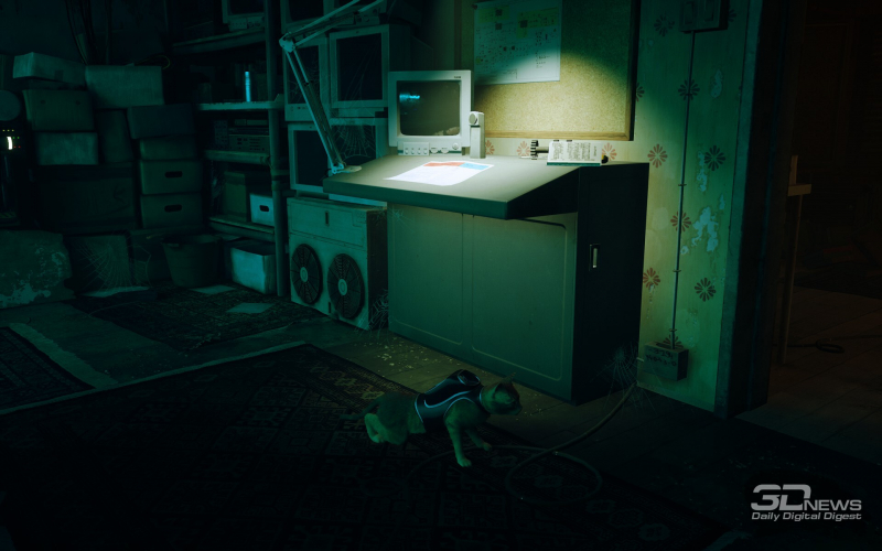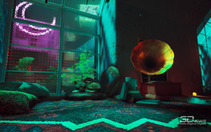 Separadamente, é claro, é necessário observar o design gráfico. Este é o primeiro jogo do BlueTwelve, e a empresa obviamente não trabalhou com um orçamento gigantesco, mas utilizou os recursos disponíveis simplesmente lindos: já observei a animação do gato acima, a animação facial foi jogada ao mar, povoando o mundo com robôs com tela rostos, eles não visavam o mundo aberto, mas todos os cantos do Stray parecem ótimos. Poucos jogos AAA podem se orgulhar de tanta atenção aos detalhes. Ao mesmo tempo, não há problemas sérios com otimização – em alguns lugares a taxa de quadros caiu, mas acho que isso será corrigido nos primeiros patches – não causa um problema sistêmico.