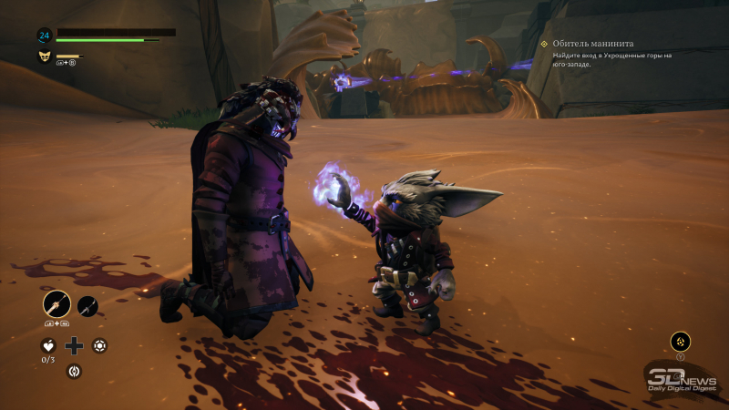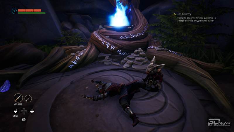 Mas o jogo está apenas começando. Farren acorda em uma caverna sob uma árvore azul brilhante, e um estranho fragmento de uma raça desconhecida se destaca em seu peito. Teremos que descobrir o que aconteceu, como nos livrar do “presente” e voltar para o continente. Nisso, o meio-lobo-meio-gnomo Boji ajudará o herói, que, de fato, devolveu o infeliz aventureiro do outro mundo. E prestará um serviço tão útil durante toda a passagem.