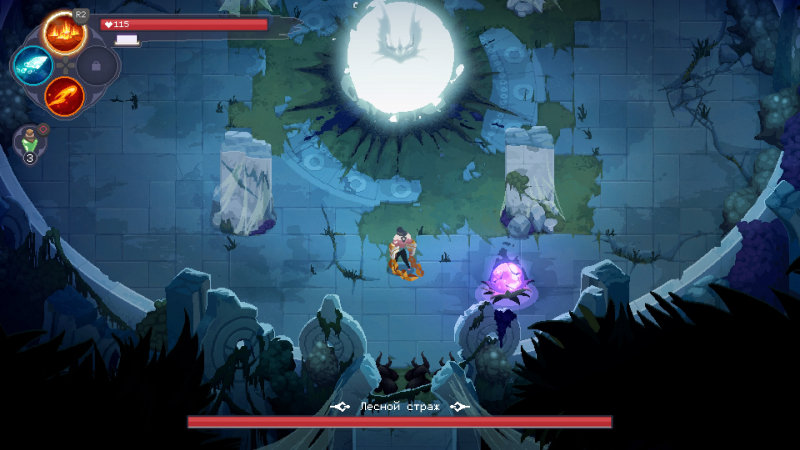 Todas essas mecânicas são especialmente interessantes em batalhas contra chefes. Um deles muda periodicamente de forma, forçando o jogador a alternar entre ataques de fogo e gelo, e as flores que crescem perto dele permitem que você acumule mana rapidamente. Outro chefe atrai o protagonista para ele – você precisa agarrar os objetos colocados na arena com correntes e escapar dos ataques, além de usar magia em momentos de calma. Todas essas batalhas são muito divertidas – tanto que gostaria de ver um modo separado com essas batalhas.