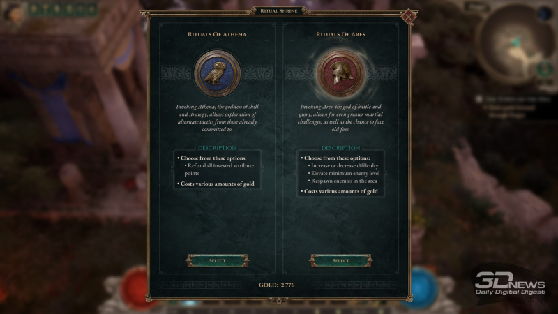 No menu do altar, você pode realizar vários rituais – por exemplo, diminuir ou aumentar a dificuldade do jogo ou ressuscitar inimigos no local