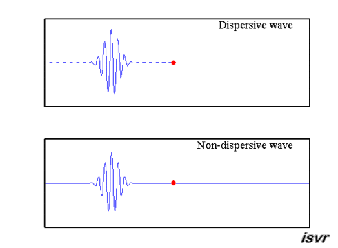 Uma onda se propagando em um meio com e sem dispersão (fonte: ISVR)