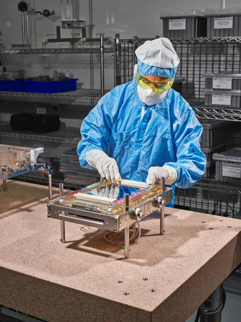 Instalando a fotomáscara EUV no suporte: feito à mão! (fonte: MIT)