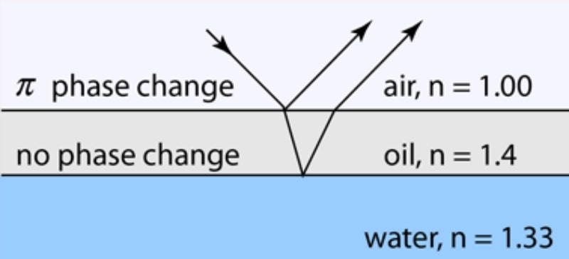 Como é sabido, se uma onda de luz é refletida a partir da fronteira com uma substância cujo índice de refração é maior que o do meio de propagação primário, a fase do feixe refletido muda de π/2. Por outro lado, se o feixe inicialmente viajou em um meio com índice de refração mais alto e foi refletido a partir do limite além do qual se encontra uma substância com um n menor, a fase dessa onda de luz permanecerá inalterada.