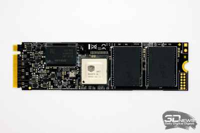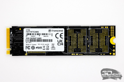 Todos os elementos da versão terabyte do MTE240S, que é discutido nesta revisão, são montados em um lado da placa de fator de forma M.2 2280, e isso imediatamente distingue o SSD em questão do ADATA XPG Gammix S50 Lite, que tinha um design de dupla face. Além disso, em termos de disposição mútua de elementos na placa, o drive Transcend também difere marcadamente, o que apenas confirma que ele foi longe do design de referência.