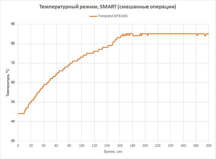 A temperatura na qual o controlador SMI SM2267 ativa o estrangulamento é de 85 graus. É por isso que a curva no gráfico é limitada de cima por esse valor.