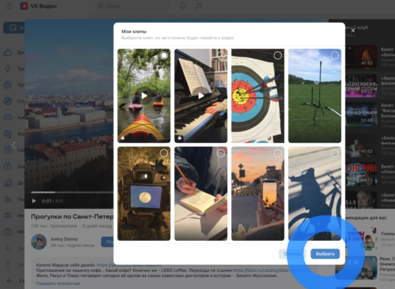 Nos aplicativos móveis VKontakte para iOS e Android, um botão “Criar clipe” aparecerá, permitindo que você selecione um episódio de um vídeo longo para edição posterior em um editor de clipe especial. Você pode cortar o clipe, adicionar áudio e legendas e publicá-lo. O recurso Smart Trim pode converter vídeo horizontal em um clipe vertical, selecionando automaticamente a parte mais interessante do quadro.
