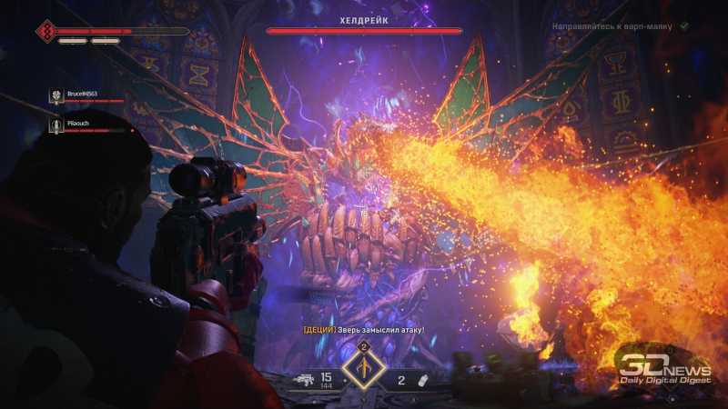 Isto não quer dizer que o jogo esteja a tornar-se aborrecido, pelo contrário, o enredo está a ganhar impulso, os riscos estão a aumentar e o significado emocional de cada batalha está a aumentar. Mas o próprio prazer de atirar e lutar começa a diminuir. E isso se deve não só ao fato dos inimigos terem ficado mais fortes, mas também à forma como o jogo foi equilibrado. Embora a estrutura e a narrativa da campanha sejam claramente concebidas como uma aventura para um jogador, fica claro que a experiência central de Space Marine 2 ainda é cooperativa, com os jogadores coordenando suas ações e abordando cada batalha taticamente. E neste caso, o jogo certamente não perde o espírito, e os lutadores do Caos dificilmente se sentem como “esponjas de dano” tão desagradáveis como em um jogo solo com bots. E embora seja bem possível contar a história com companheiros de IA, parece que um pouco da diversão se perdeu. E esta ideia é totalmente confirmada nos modos de jogo multiplayer.