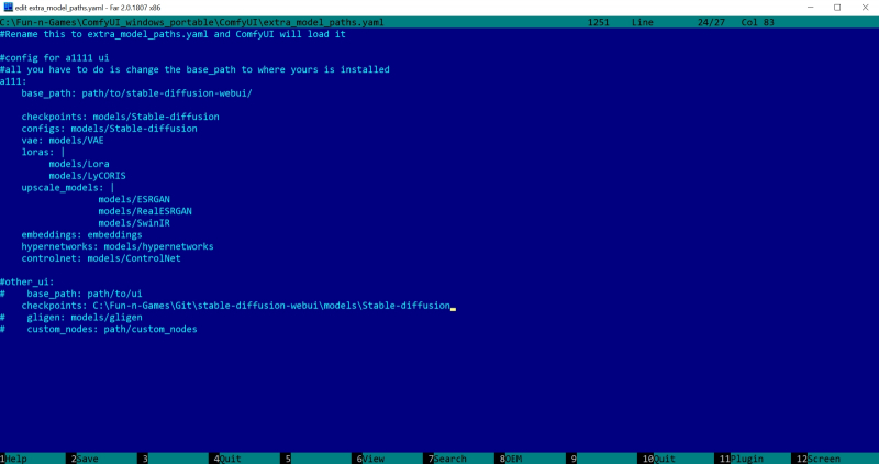 Porém, e aqueles que já usam AUTOMATIC1111 – e, digamos, querem ter certeza, por experiência própria, de que até a versão 1.5.1 esse ambiente é menos adequado para trabalhar com SDXL do que ComfyUI? Copiar os mesmos 13 GB para a pasta apropriada dentro do diretório “Automação”? Isso não é econômico – e não há necessidade, pois o ComfyUI pode usar pontos de verificação fora de seu diretório padrão.