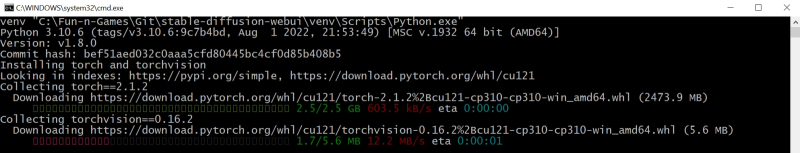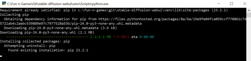 Lembramos que se durante o processo de instalação o sistema indicar o surgimento de uma nova versão do pacote pip, que serve para gerenciar atualizações no Git, a forma mais fácil de atualizá-lo é diretamente na linha de comando do Painel de Controle do Windows . Você só precisa especificar o caminho correto para a versão do Python que o AUTOMATIC1111 usa e os argumentos de inicialização corretos.