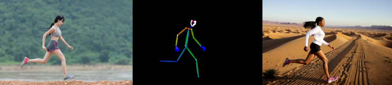 Notemos entre parênteses que existe até um pré-processador OpenPose especialmente treinado para reconhecer poses de animais. Mas, como exemplo, vamos pegar a imagem de um homem correndo do repositório de fotos distribuídas gratuitamente PX Here (domínio público CC0, gratuito para uso pessoal e comercial, sem necessidade de atribuição) e gerar uma imagem completamente diferente com base nela, mas com a mesma pose. Vamos definir uma dica positiva como