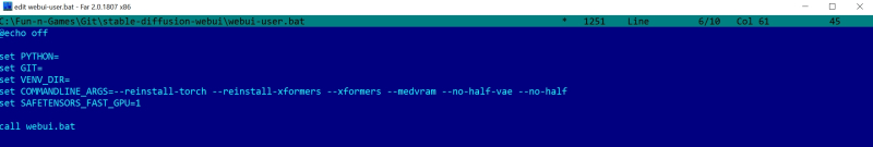 Definir COMMANDLINE_ARGS=–xformers –medvram –no-half-vae –no-half