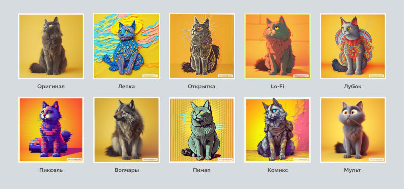 A rede neural YandexART aprendeu a perceber consultas de texto e imagens simultaneamente. Recebida a tarefa, ela redesenha completamente a imagem de acordo com a vontade do usuário: a imagem é convertida em formato vetorial e editada; o resultado mantém as características da imagem original.