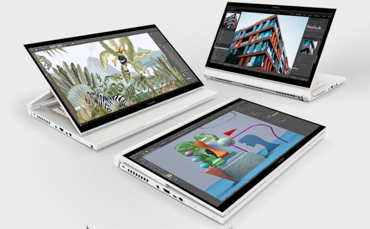 A Acer apresentou o laptop conversível ConceptD 3 Ezel por US $ 1.700. A novidade foi uma atualização do modelo do ano passado. O laptop é feito em um estilo minimalista e possui uma dobradiça proprietária que permite girar a tela 360 graus.