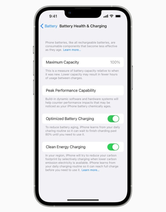 Nos EUA, um projeto ainda mais ambicioso de Carregamento de Energia Limpa para o iPhone está sendo implementado. A partir deste mês no iOS 16, você pode usar esse recurso para otimizar o carregamento – o próprio smartphone determina em que momento a energia de fontes “verdes” entra na rede elétrica e a utiliza.