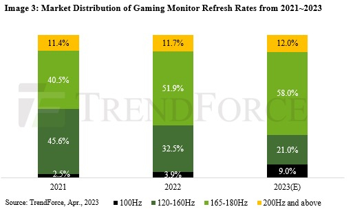 Os analistas esperam que os modelos de 100Hz e 165-180Hz melhorem acentuadamente em 2023, com as últimas opções absorvendo gradualmente a participação de mercado dos monitores de 120-160Hz hoje, já que a diferença de preço entre eles não é muito grande.
