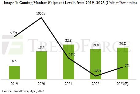 As remessas de monitores de jogos caíram em 2022 devido à alta inflação, de acordo com uma pesquisa da TrendForce. Apenas 19,8 milhões de monitores de jogos foram vendidos no ano passado, uma queda de 13% em relação ao ano anterior, segundo relatórios.